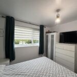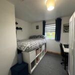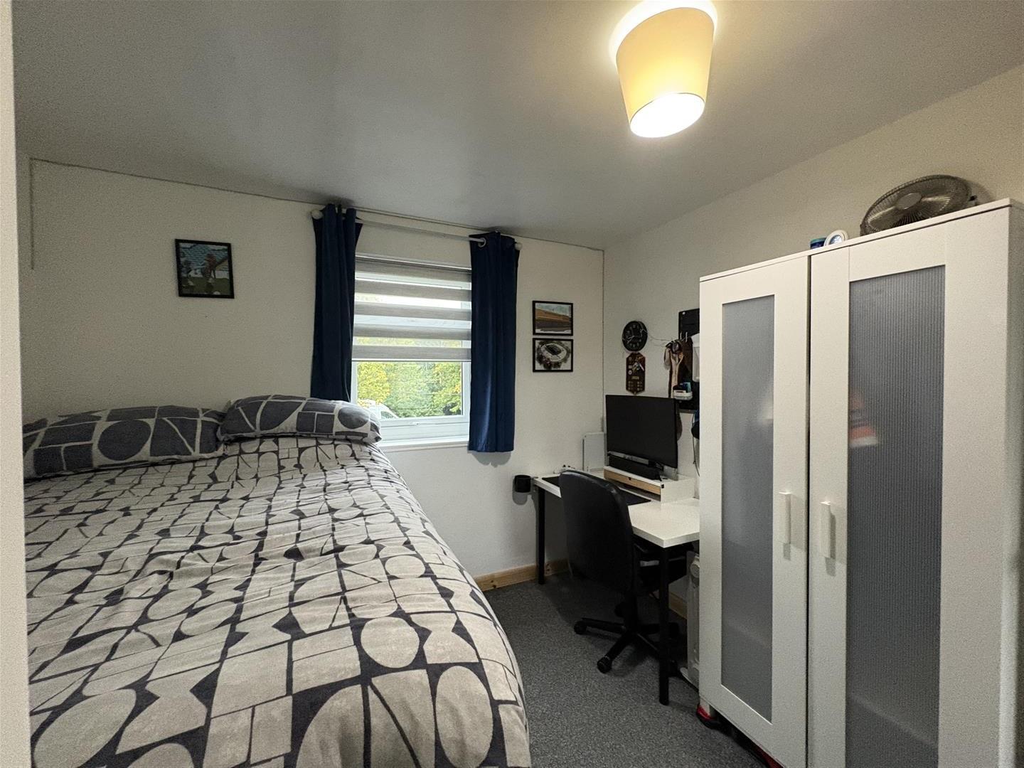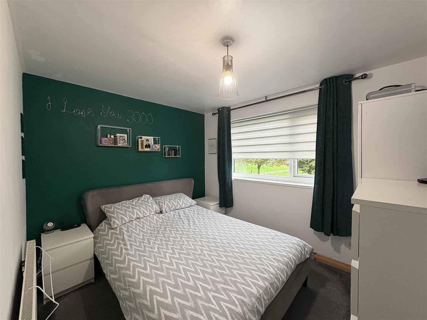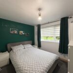 Painted in white emulsion with feature wall painted in green emulsion wooden skirting boards and grey fitted carpet this room has a upvc window overlooking the rear garden. This double room has plenty of space with sockets, radiator and window overlooking the rear garden